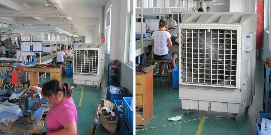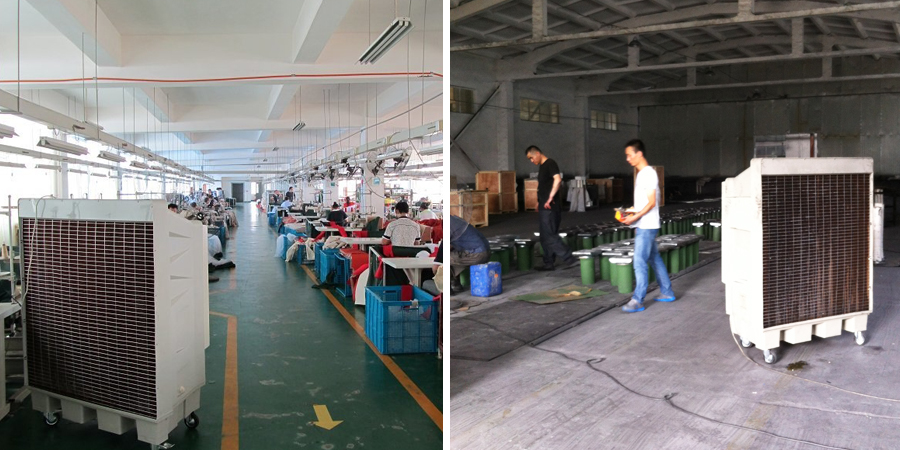 大型生产车间厂房面积广、员工聚集,易出现空气不循环、高温闷热问题。炎热季节里,车间高温不仅导致员工工作效率下滑,还影响作业舒适度。传统全域降温方案成本高、针对性弱,而工厂核心需求是解决人员岗位降温,无需对货物存储区降温。某机械生产车间面积较大,员工集中在操作岗作业,夏季车间温度达36℃以上,空气憋闷导致员工疲劳感加剧、效率下降。因无需对货物区降温,经过多方对比,最终车间引入多台KT-1B-H3蒸发式冷风机。